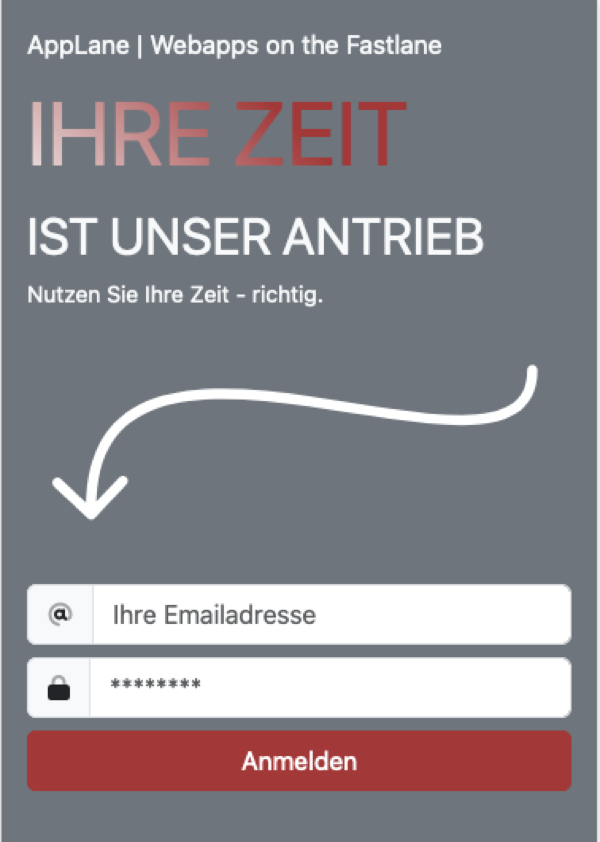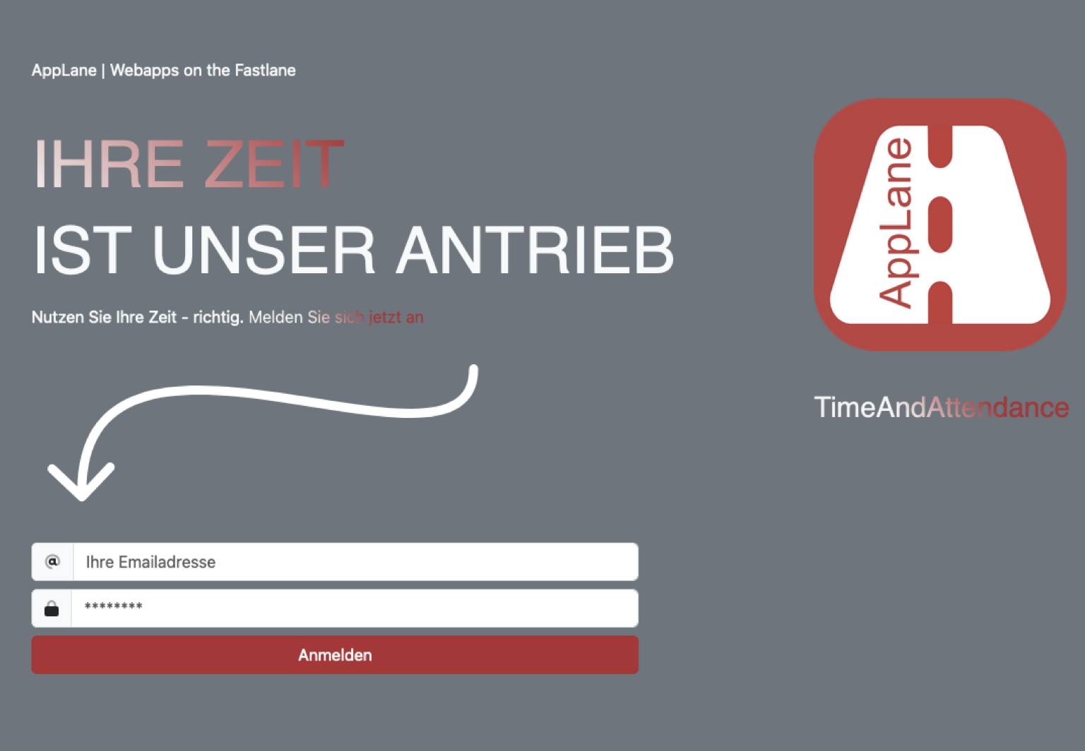 Geben Sie einfach Ihre Emailadresse und Ihr Passwort ein - und schon werden Sie angemeldet; In der mobilen Version von TimeAndAttendance stehen Ihnen weniger Möglichkeiten zur Verfügung - aber das soll auch so sein.