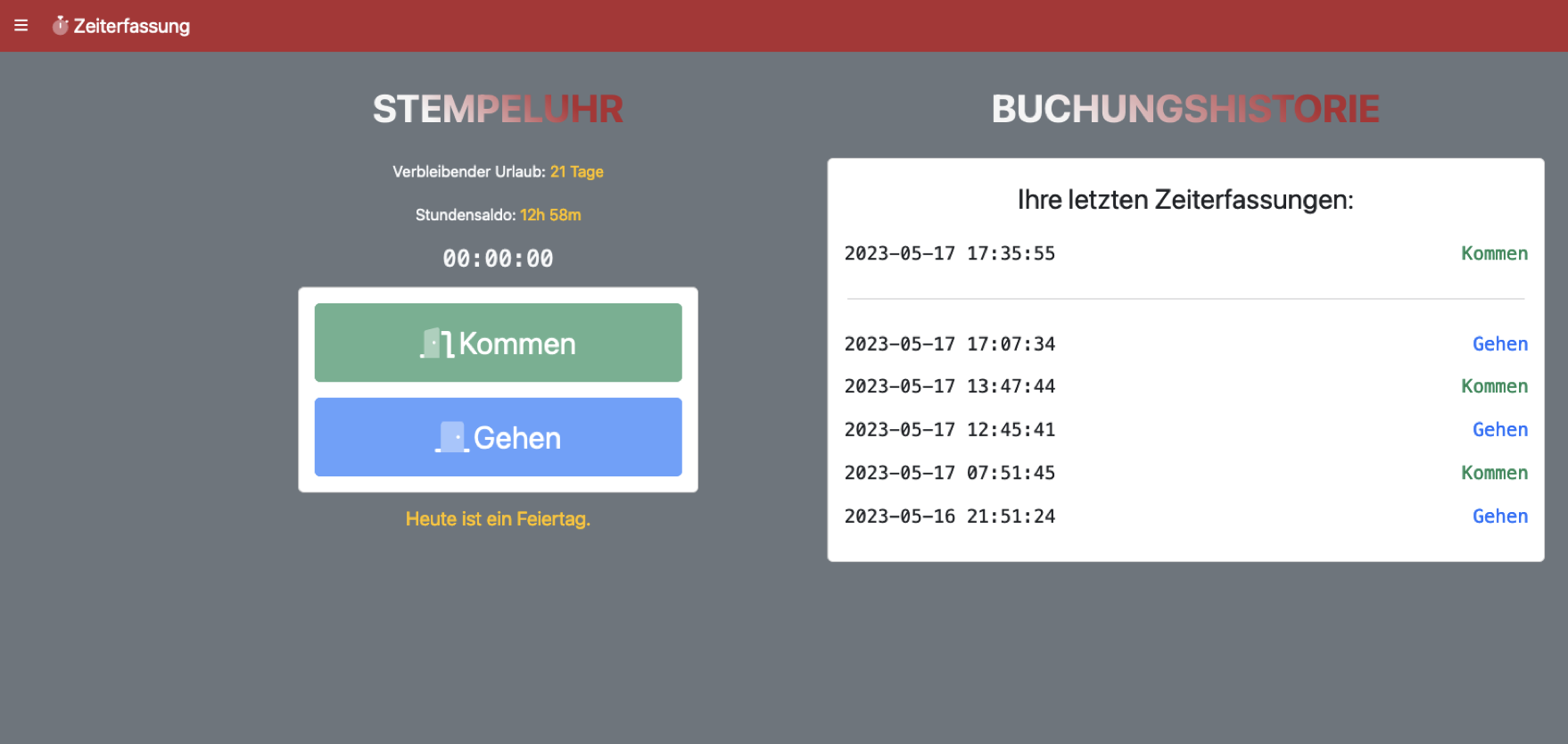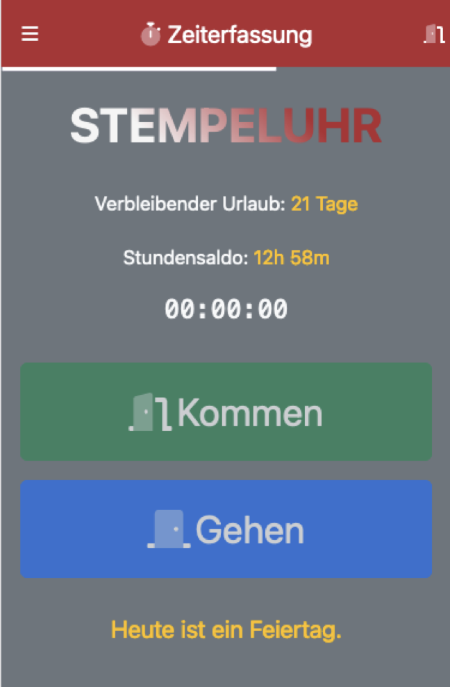Beginnen Sie Ihren Arbeitstag, kommen aus der Pause oder von einer anderen Abwesenheit, drücken Sie einfach auf Kommen; gehen Sie in die Pause oder in den wohlverdienten Feierabend, drücken Sie auf Gehen - und das ist alles.