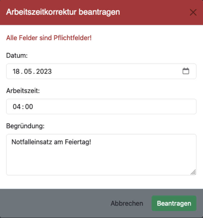 Anträge zu stellen muss nicht schwer und langwierig sein. Mit TimeAndAttendance stellen Sie einen Antrag auf Zeitkorrektur einfach in Ihrem Zeitnachweis; Sie brauchen sich auch nicht darum zu kümmern, dass der Antrag bei der richtigen Person oder fristgerecht eingeht - das geht alles automatisch.